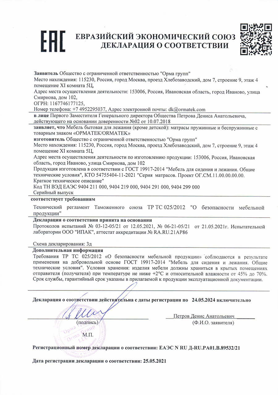 Гарантия распространяется на матрасы, кровати, основания и аксессуары представленные на нашем сайте.